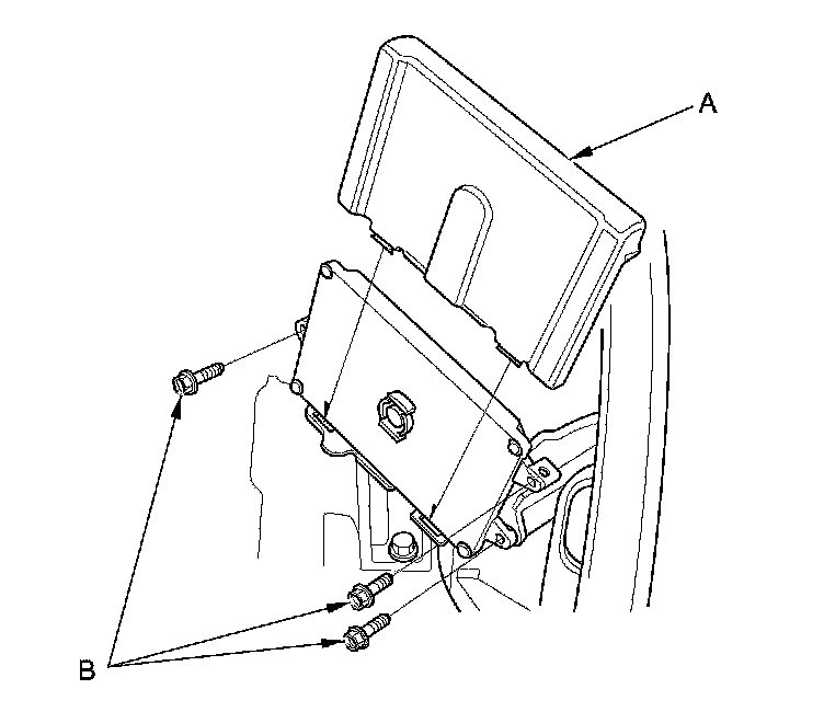 12. Remove the ECM/PCM cover (A), then remove the three bolts (B) securing the ECM/PCM.