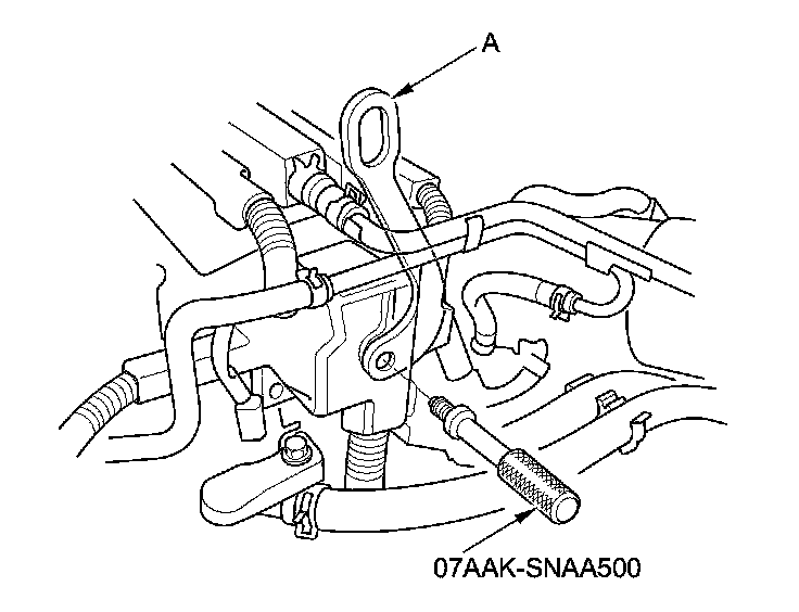 58. Remove the ground cable (A), then install the universal lifting eyelet (07AAK-SNAA120).
