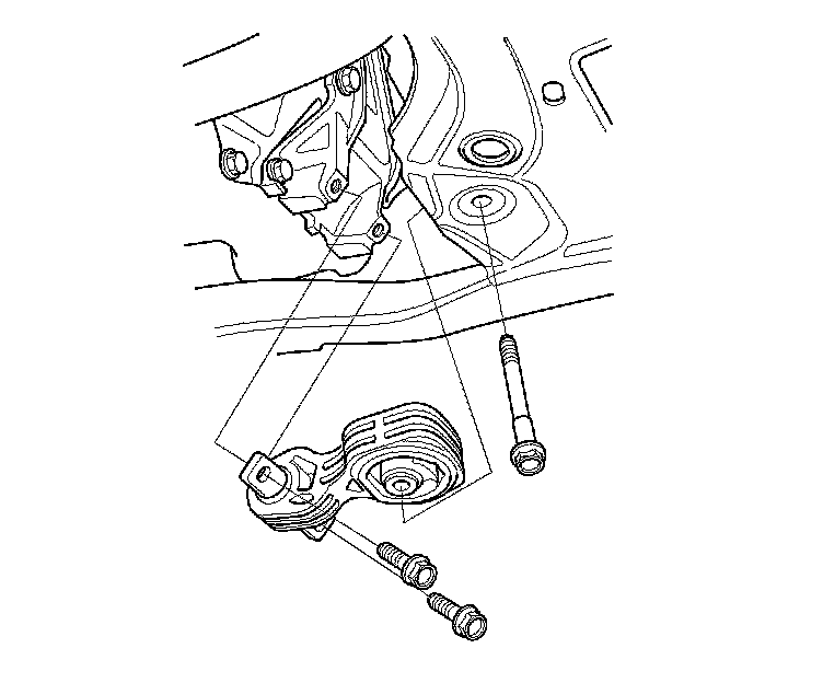 60. Remove the side engine mount bracket mounting bolt and nut.