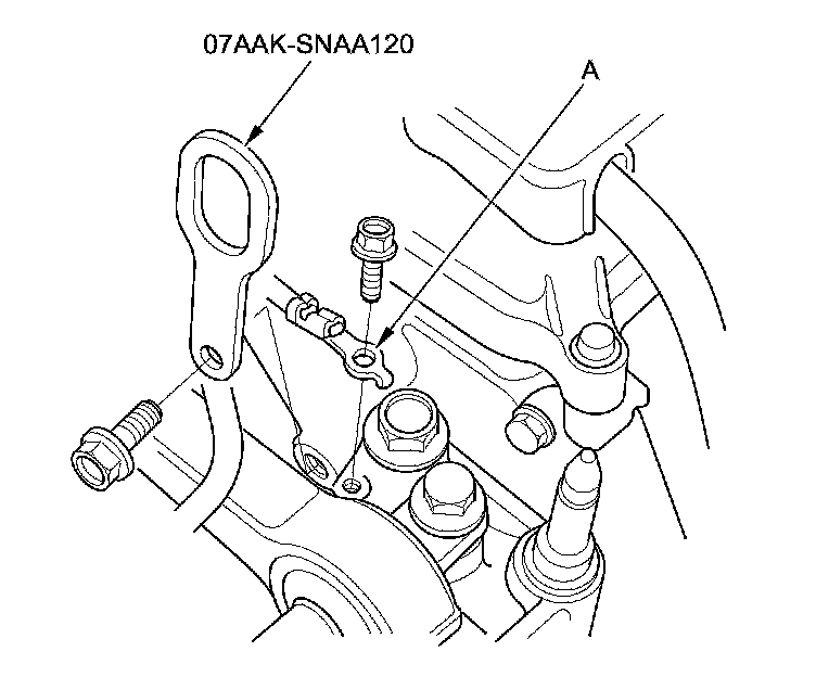 46. Attach the 1.8 support eyelet (A) to the cylinder head with the 1.8 support bolt (07AAK-SNAA500). Tighten the bolt by hand.