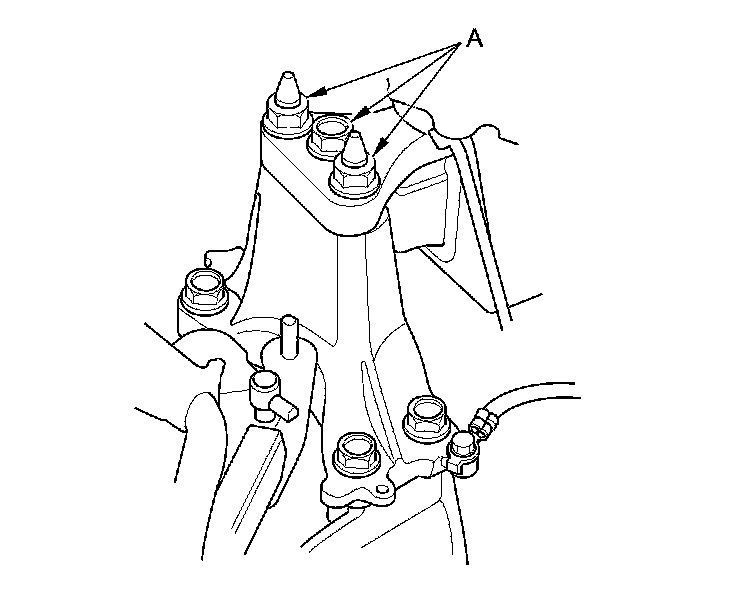 29. Install the upper torque rod (A), then tighten the new upper torque rod mounting bolts in the numbered sequence shown.