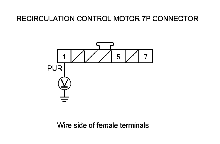 4. Measure the voltage between recirculation control motor 7P connector terminal No. 1 and body ground.