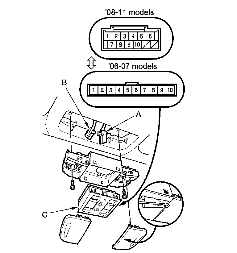 3. Remove the moonroof switch (C).