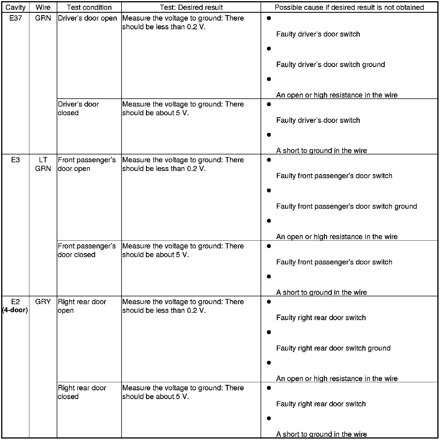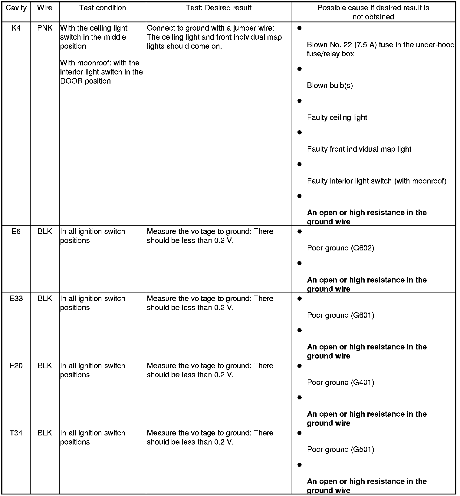 - Before testing, make sure the No. 10 (7.5 A) fuse in the under-dash fuse/relay box is OK.