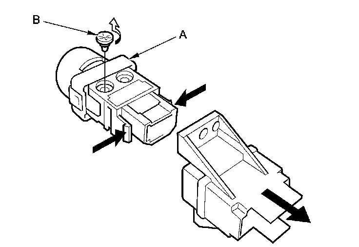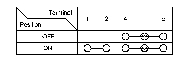 4. If the continuity is not as specified for terminals No. 1 and No. 2, replace the switch (A). If the continuity is not as specified for terminals No. 4 and No. 5, replace the bulb (B).