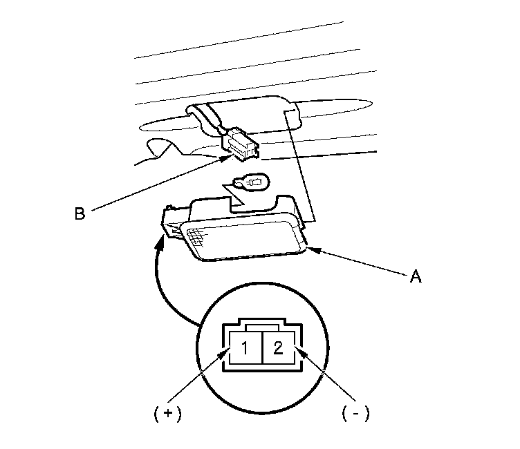 4. Check for continuity between terminals No. 1 (+) and No. 2 (-). There should be continuity. If there is no continuity, check the bulb. If the bulb is OK, replace the light.