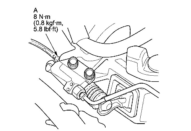 2. Attach one end of a clear tube to the bleeder screw (A), and put the other end into a container. Loosen the bleeder screw to allow air to escape from the system.