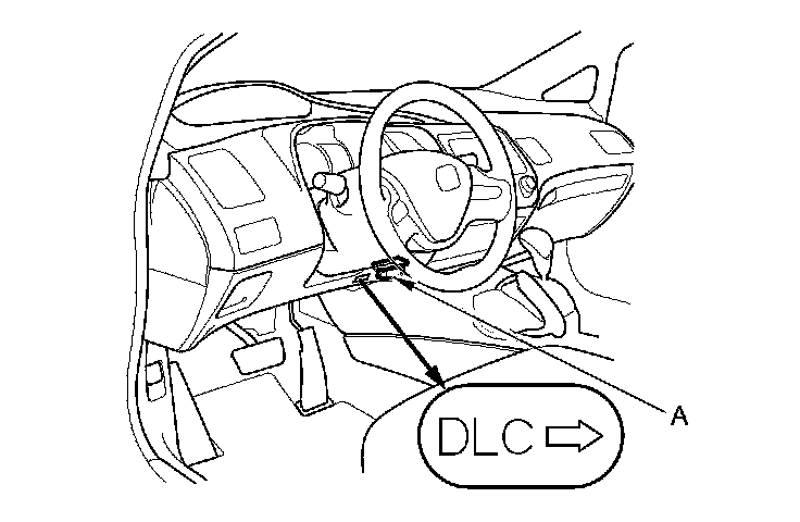 1. With the ignition switch in LOCK (0), connect the HDS (Honda Diagnostic System) to the data link connector (DLC) (A) located under the driver's side of the dashboard.