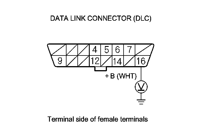 29. Measure the voltage between DLC terminal No. 16 and body ground.