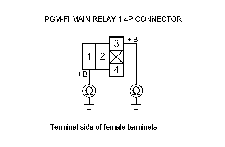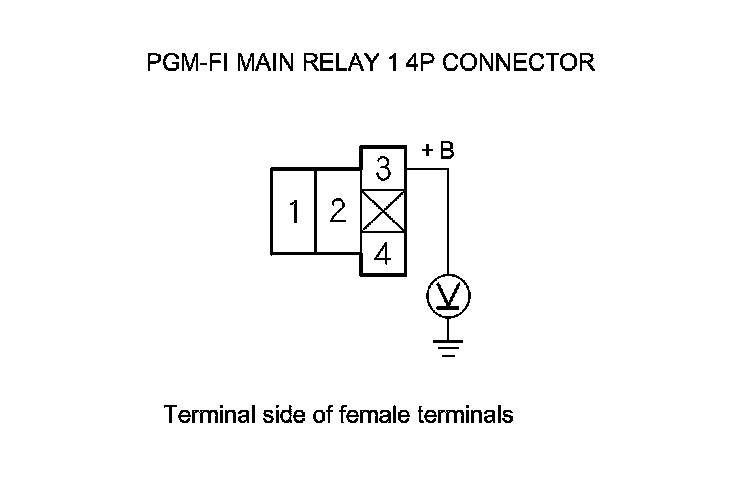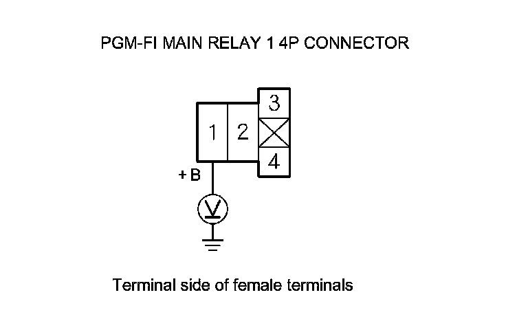 69. Measure the voltage between PGM-FI main relay 1 4P connector terminal No. 1 and body ground.