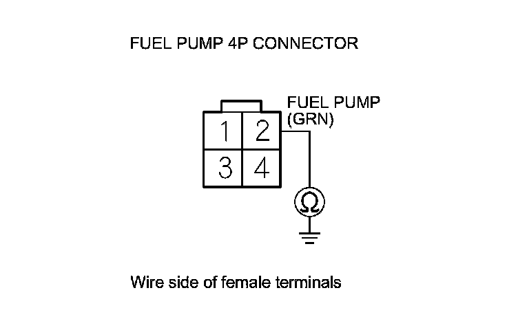 57. Check for continuity between fuel pump 4P connector terminal No. 2 and body ground.