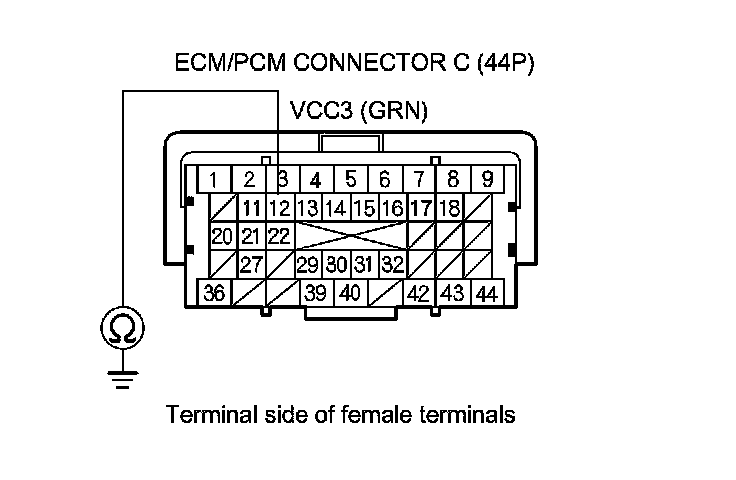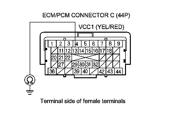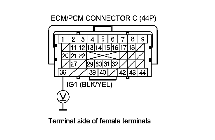 61. Measure the voltage between ECM/PCM connector terminal C36 and body ground.