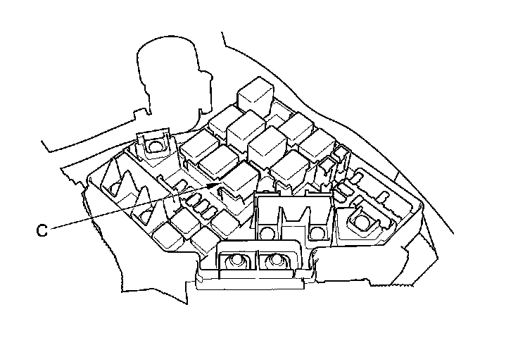 68. Remove PGM-FI main relay 1 (C) from the under-hood fuse/relay box.