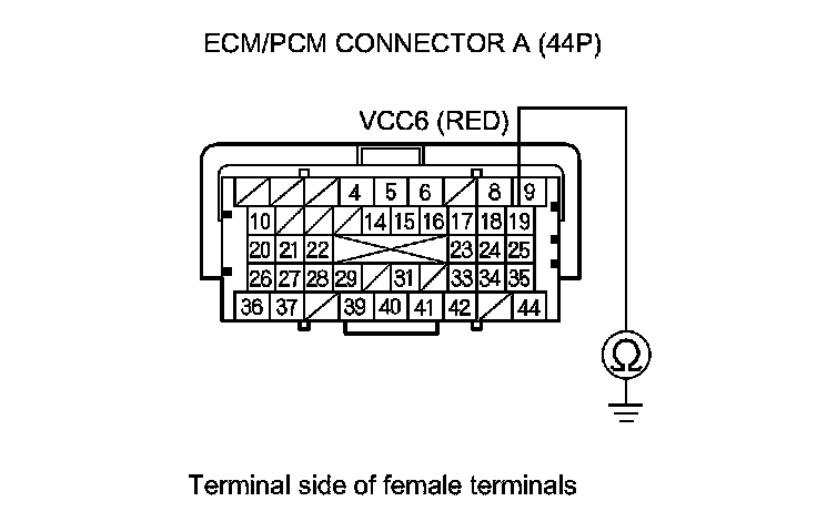 35. Check for continuity between ECM/PCM connector terminal A36 and DLC terminal No. 6.