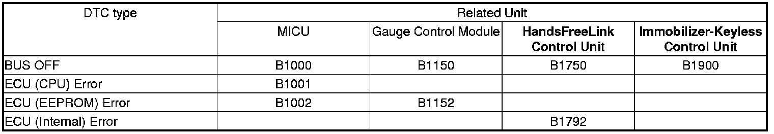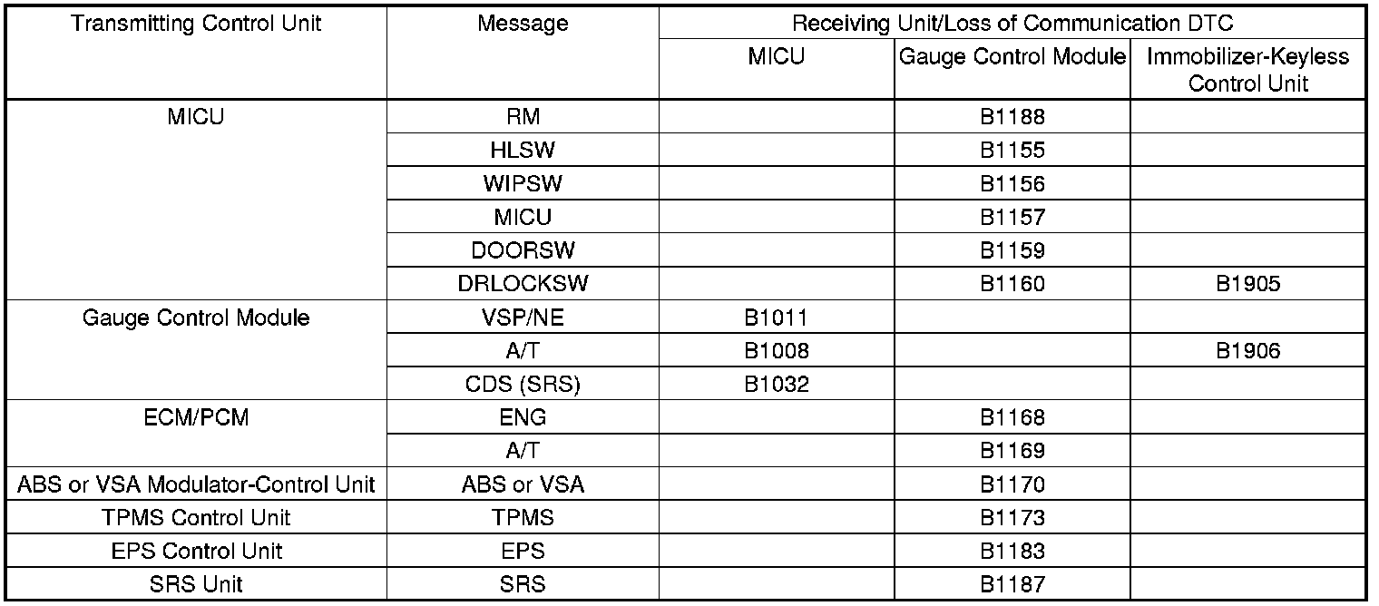 When an ECU on the CAN circuit is unable to communicate with the other ECUs on the B-CAN and F-CAN circuits, the other control units will set loss of communication DTCs. Use this chart to find the control unit that is not communicating with the other control units on the CAN circuit.