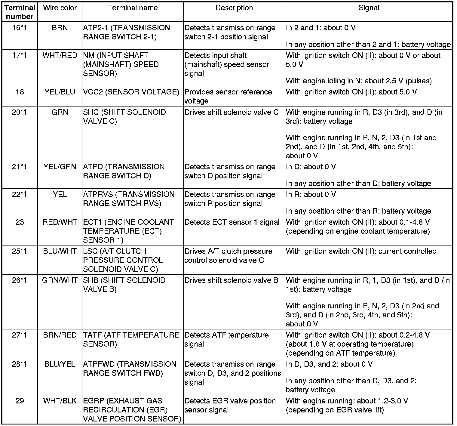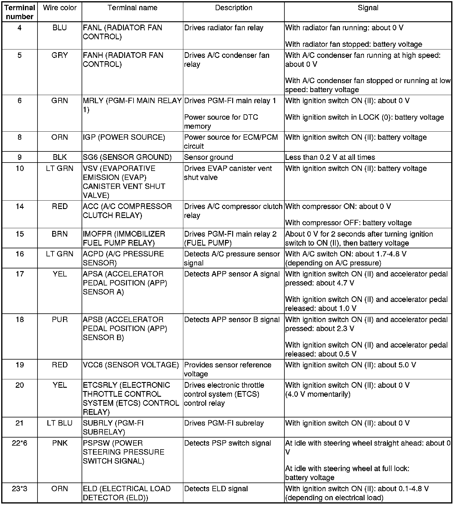 ECM/PCM Inputs and Outputs at ECM/PCM Connector A (square) (44P)