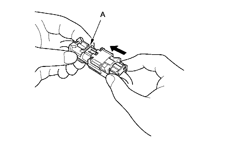 Hold both connector halves, and press them firmly together until the projection (A) of the sleeve-side connector clicks.