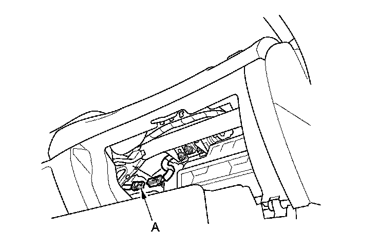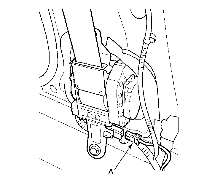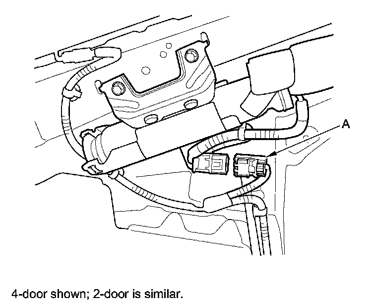 10. Disconnect the floor wire harness 4P connectors (A) from the driver's and the front passenger's seat belt buckle tensioner 4P connectors.