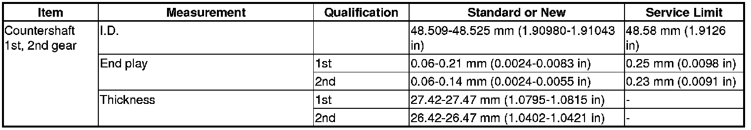 Countershaft 1ST, 2ND Gear Specifications (5MT)