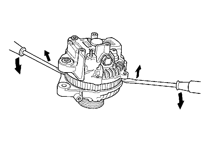 7. Separate the rear housing from the drive-end housing by inserting a flat-tip screwdriver into the openings and prying them apart.