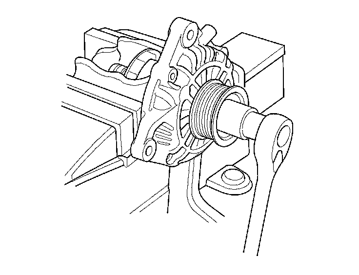 9. If you are not replacing the front bearing and/or rear bearing, go to step 17. Clamp the rotor in a soft-jawed vise, then remove the pulley locknut.