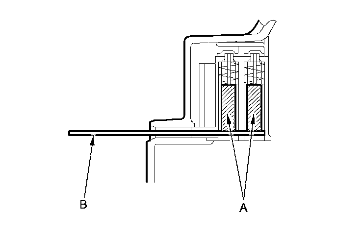 22. Push the brushes (A) in, then insert a pin or drill bit (B) (about 1.8 mm (1/16 in) diameter) to hold them there.