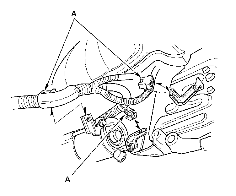4. Install the harness clamps (A) and the harness connector (B) to each clamp.