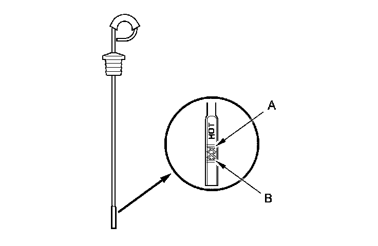 5. Remove the dipstick, and check the ATF level. It should be between the upper mark (A) and the lower mark (B).