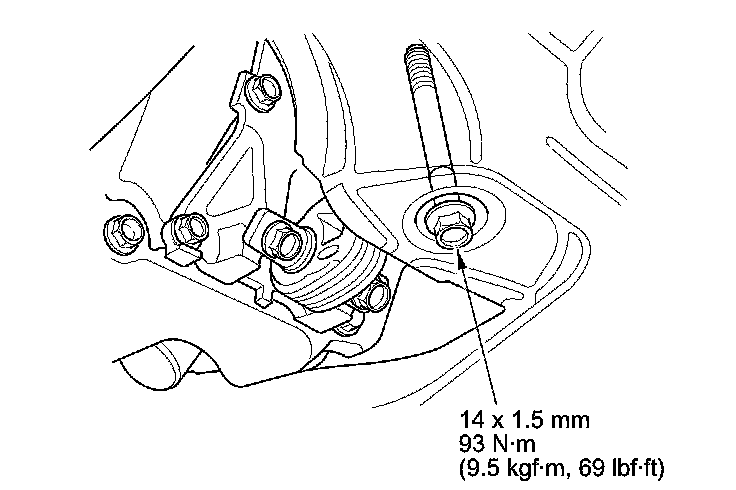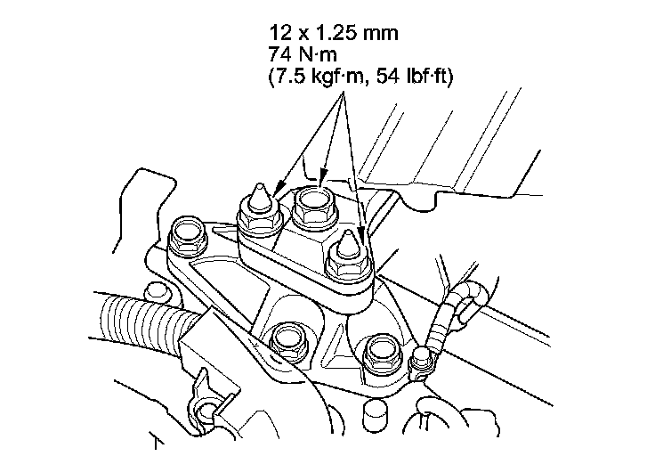 14. Tighten the transmission mount bracket mounting bolt and nuts.