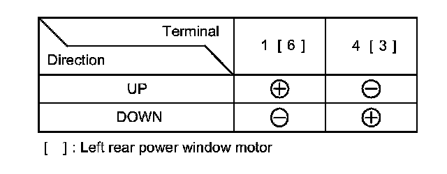 3. Test the motor by connecting battery power and ground according to the table. When the motor stops running, disconnect one lead immediately.