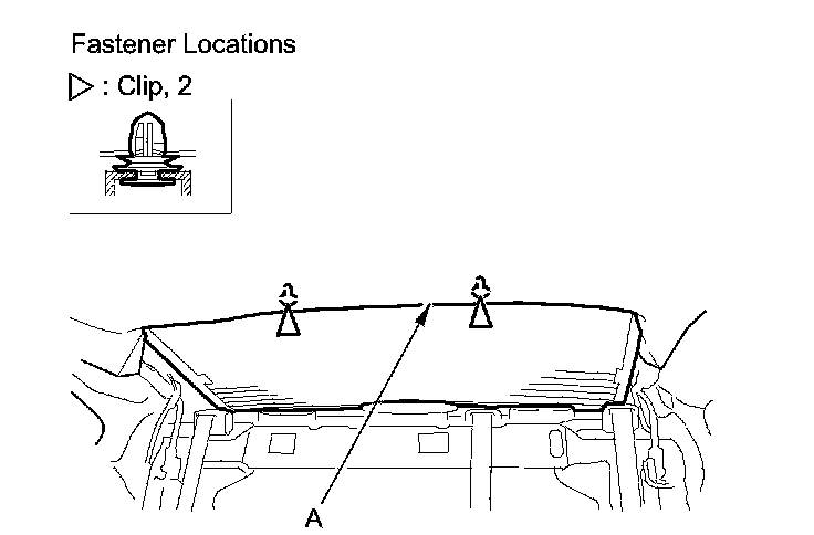5. Pull down the rear area of the headliner (A) by detaching the clips.