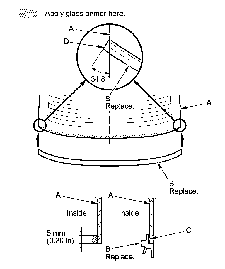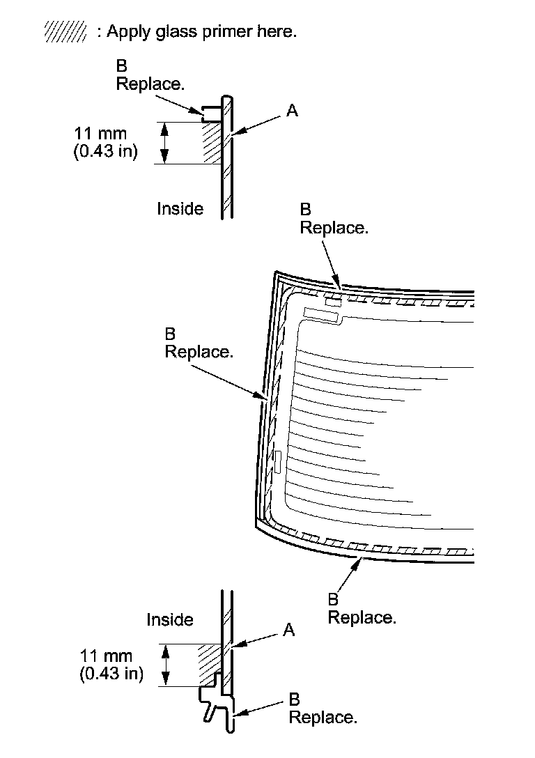 - Do not apply body primer to the rear window, and do not mix up the body and glass primer applicators.
