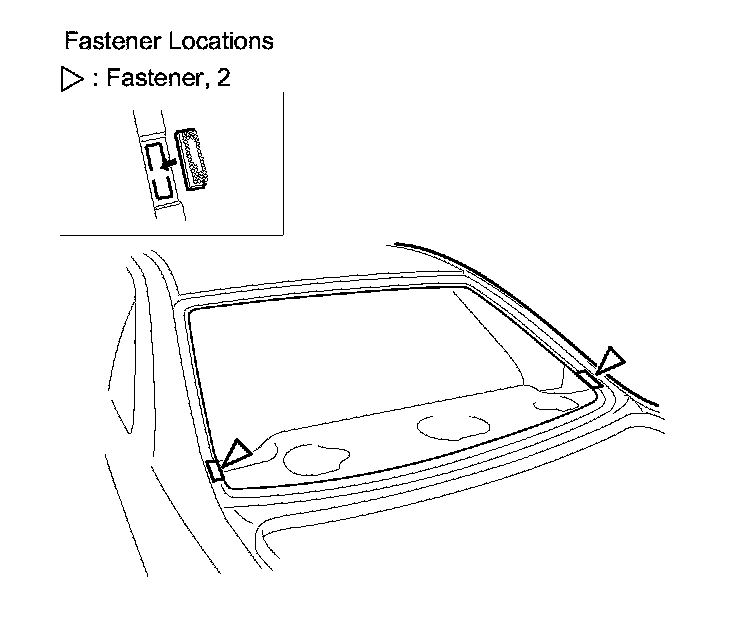 16. Attach the fasteners with the adhesive tape to the rear window opening flange of the body on both sides.
