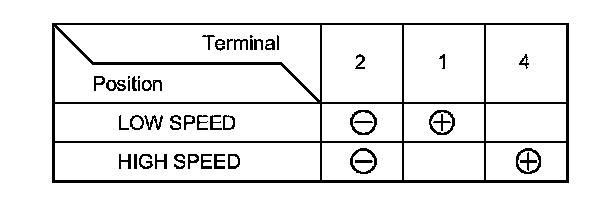 4. Test the motor by connecting battery power and ground according to the table. If the motor does not run or fails to run smoothly, replace the motor, 2-door Wiper Motor Replacement (2-Door), 4-door Wiper Motor Replacement (4-Door).