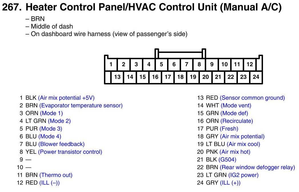 Heater Control Panel/HVAC Control Unit Connector View (Manual A/C)