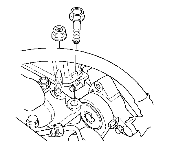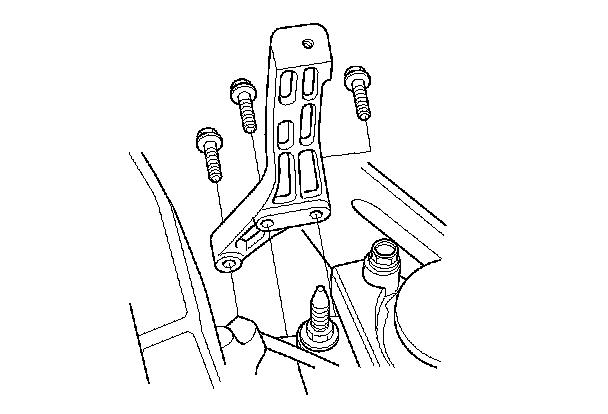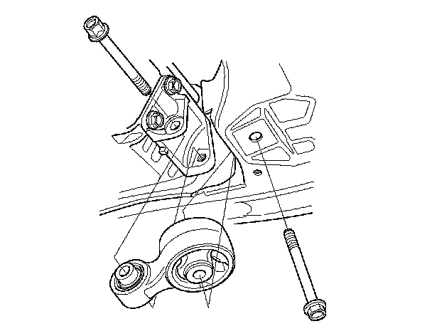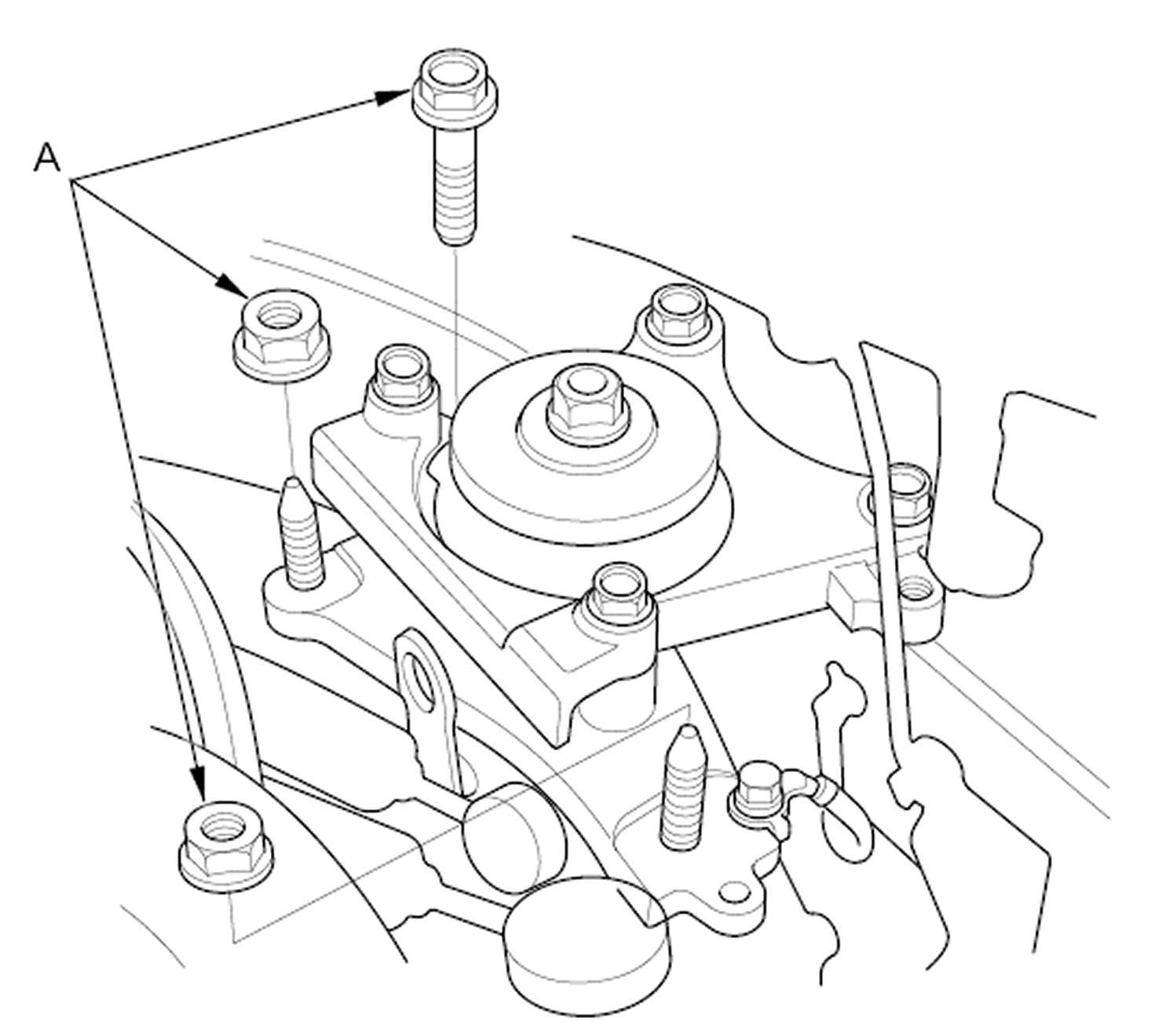 57. Remove the side engine mount bracket mounting bolt and nuts (A).