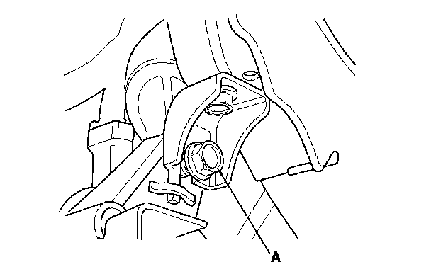 58. Remove the side engine mount bracket mounting bolt and nut (A).
