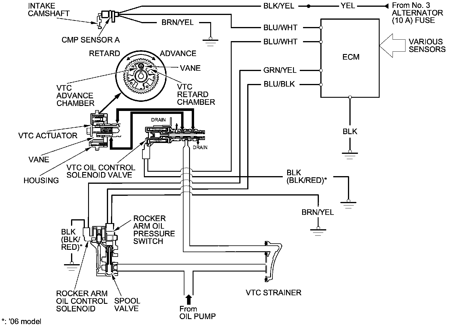 - The system reduces the cam advance at idle, stabilizes combustion, and reduces engine speed.