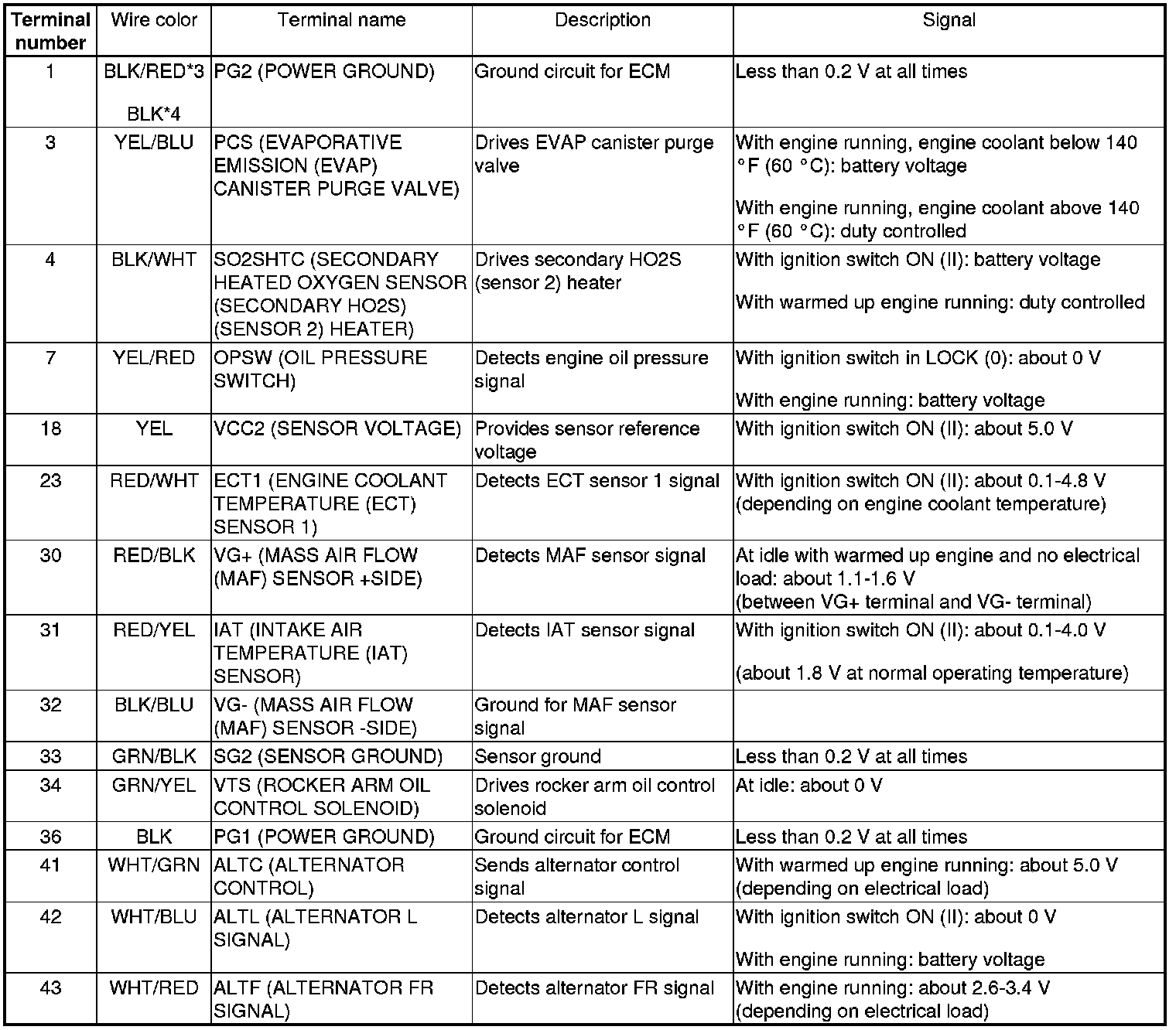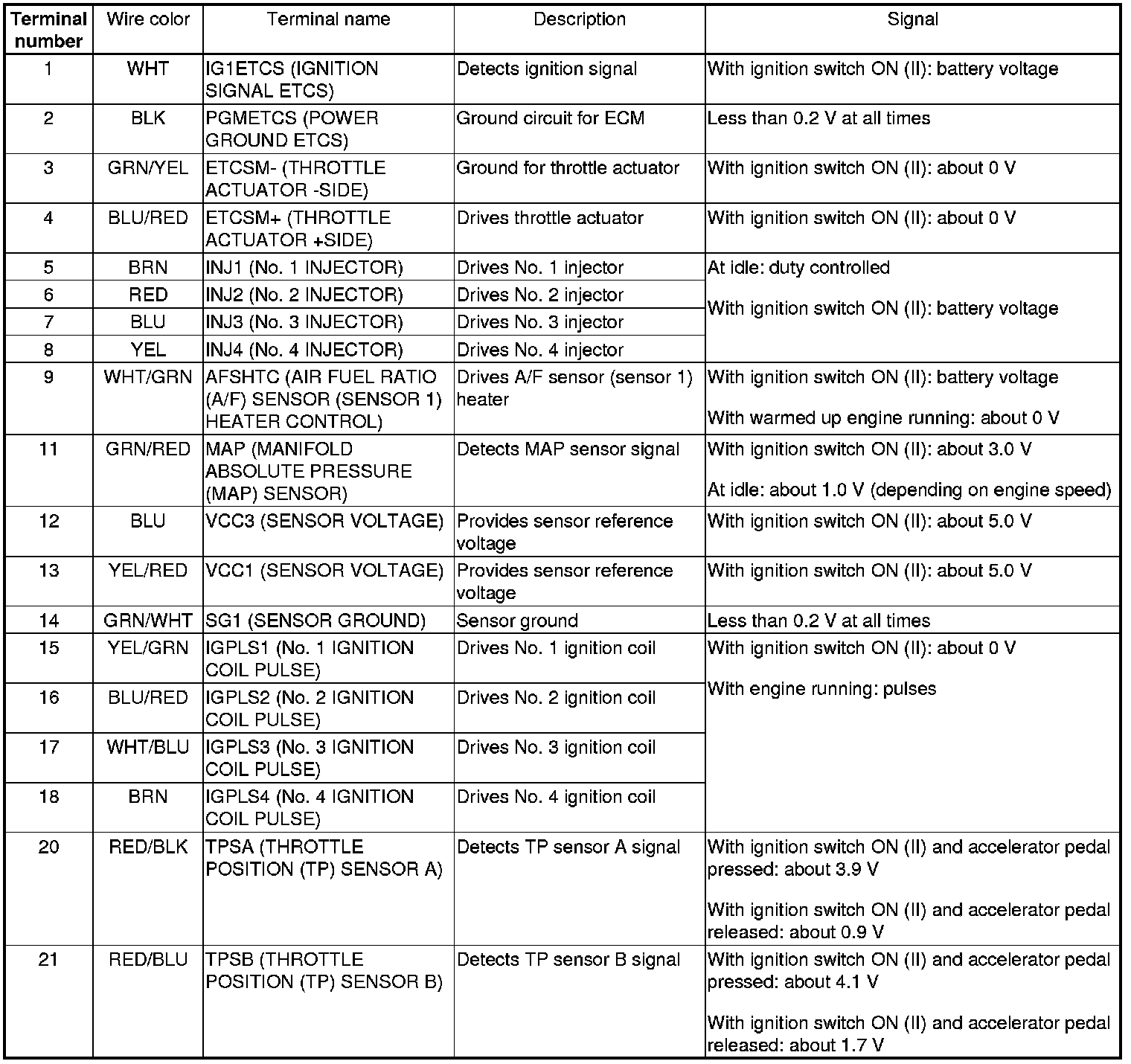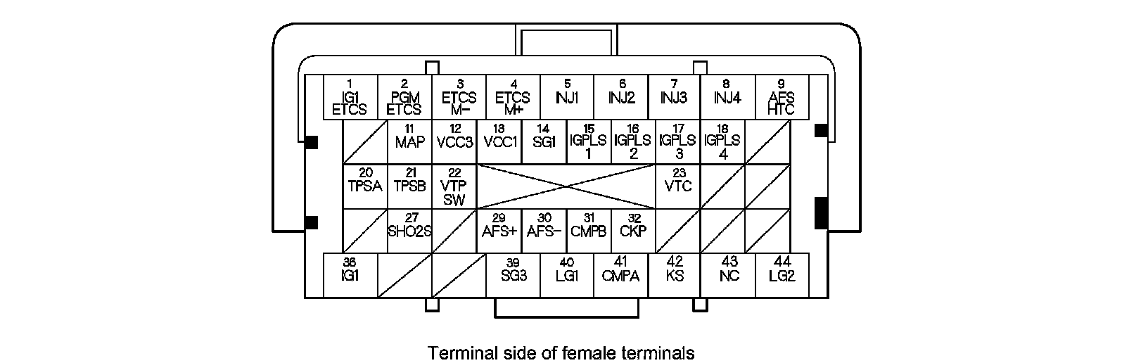 ECM Inputs and Outputs at ECM Connector A (square) (44P)