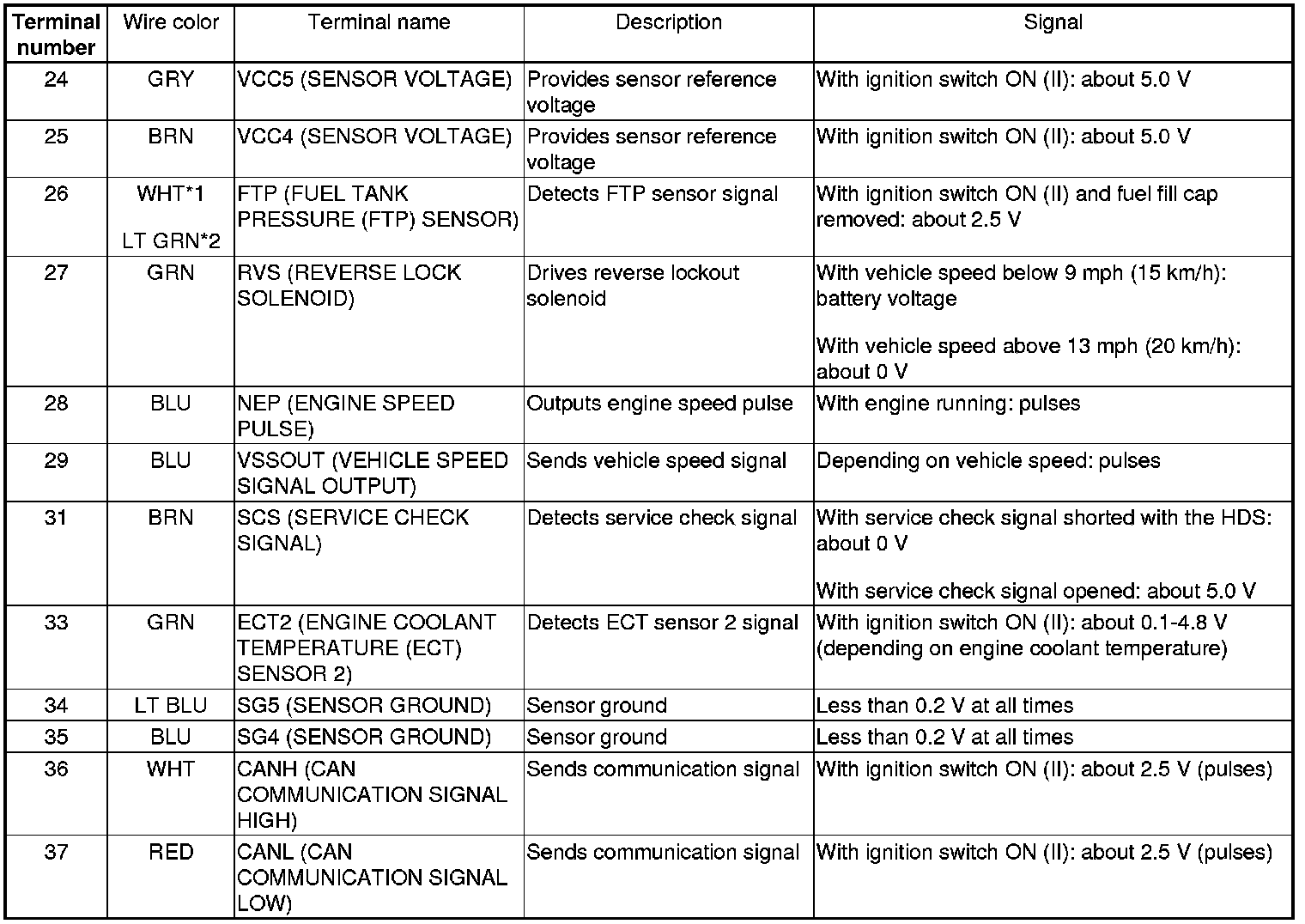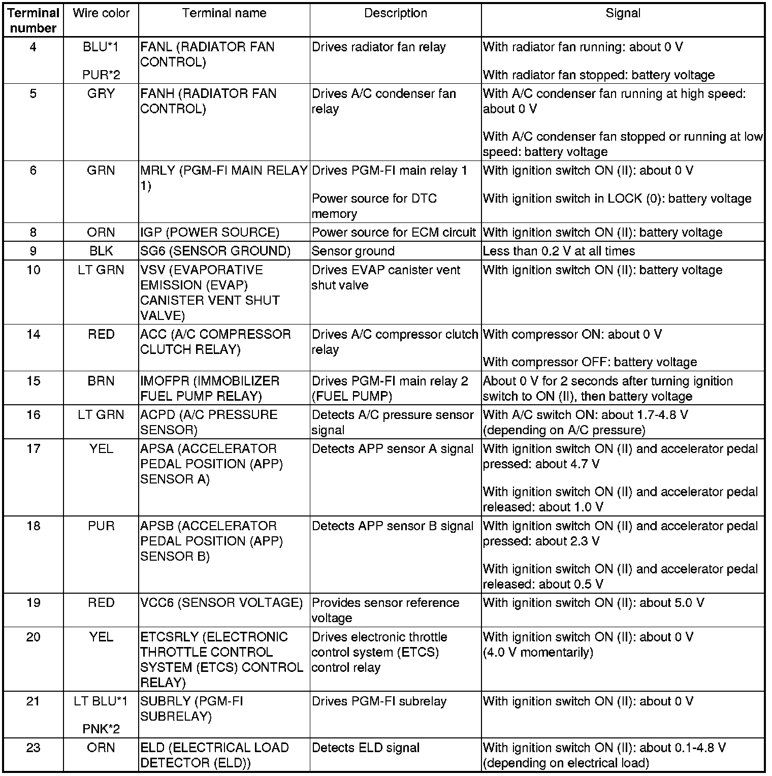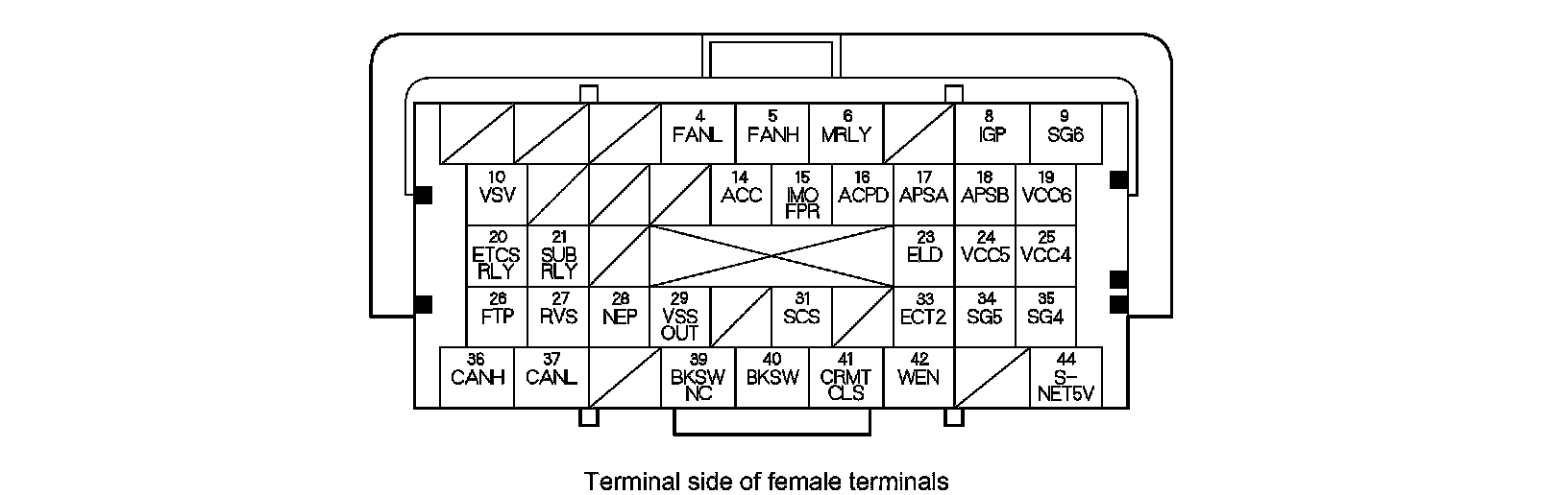 ECM Inputs and Outputs at ECM Connector A (square) (44P)