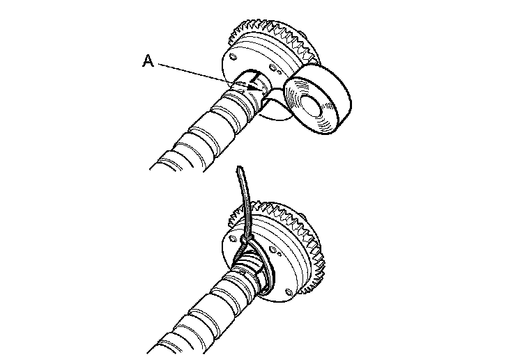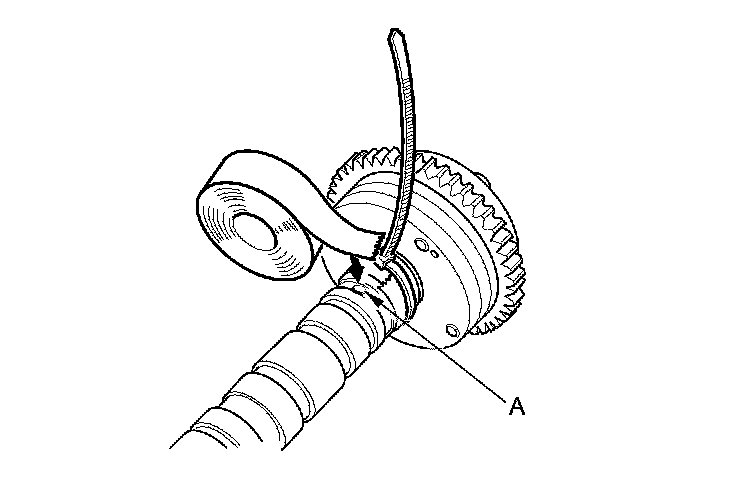 6. Seal the retard holes (A) in the No. 1 camshaft journal with tape and a wire.