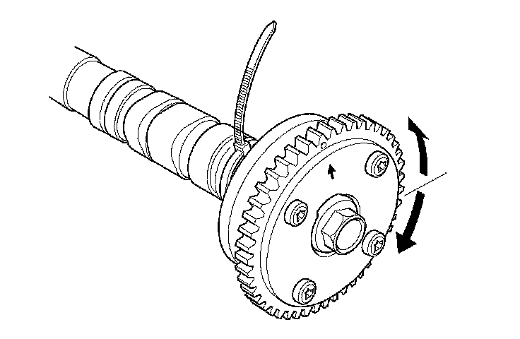 14. Hold the camshaft, and turn the VTC actuator clockwise until you hear it click. Make sure to lock the VTC actuator by turning it.