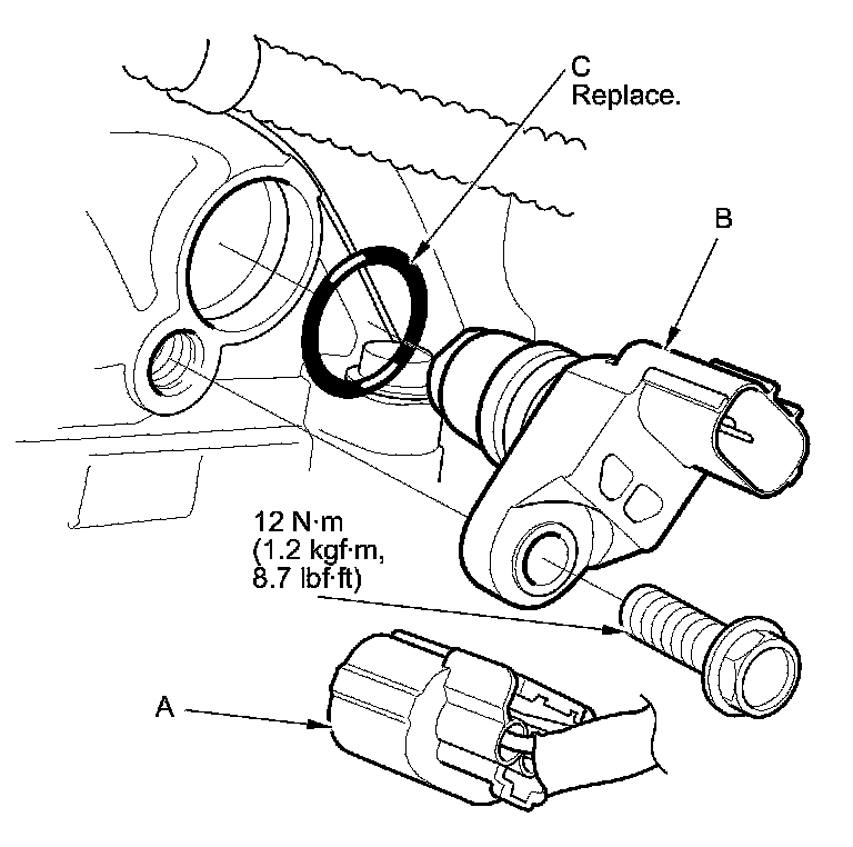 Install the parts in the reverse order of removal with a new O-ring (C).