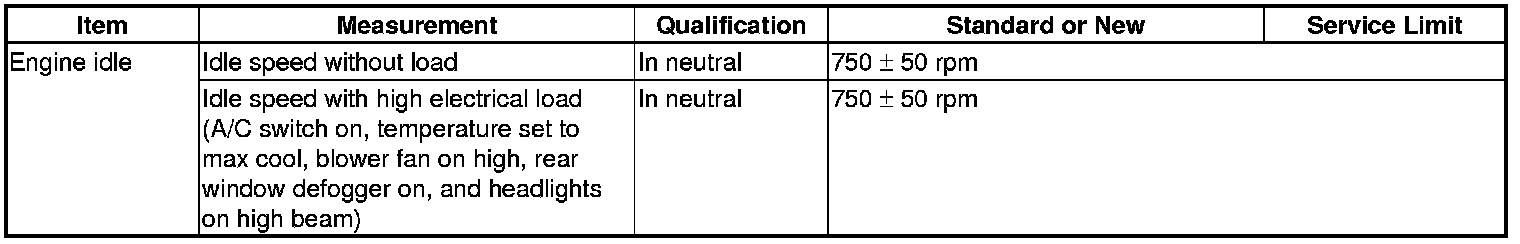 Idle Speed: Specifications