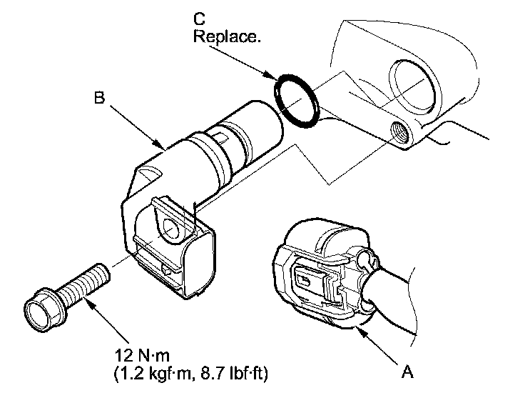 3. Install the parts in the reverse order of removal with a new O-ring (C).