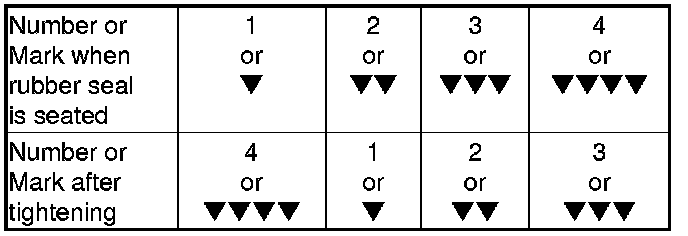 - Tighten the filter by turning it clockwise three numbers or marks from the one you noted. For example, if mark V is at the bottom when the seal is lightly seated, tighten the filter until the mark VVVV comes around to the bottom.