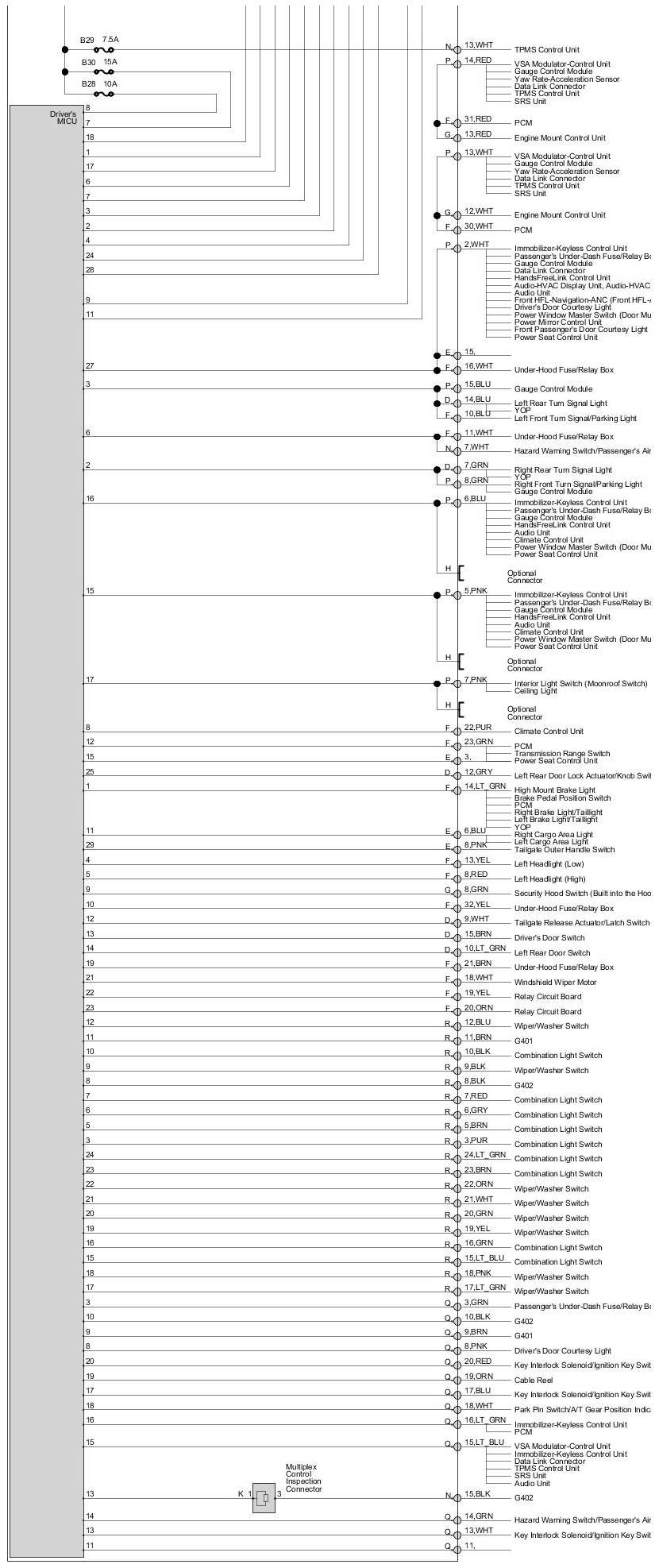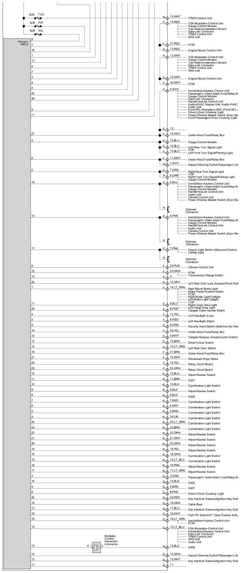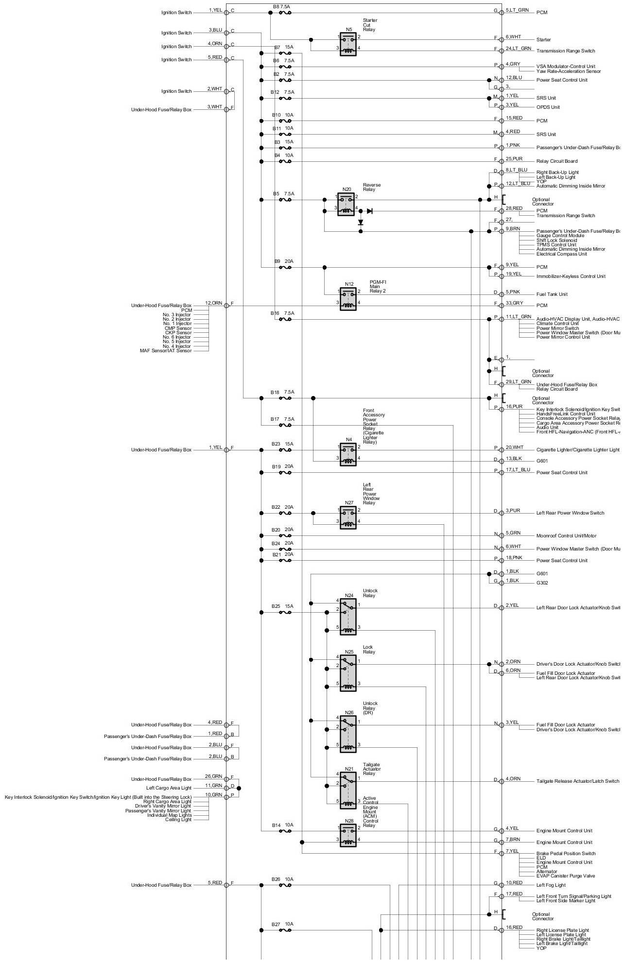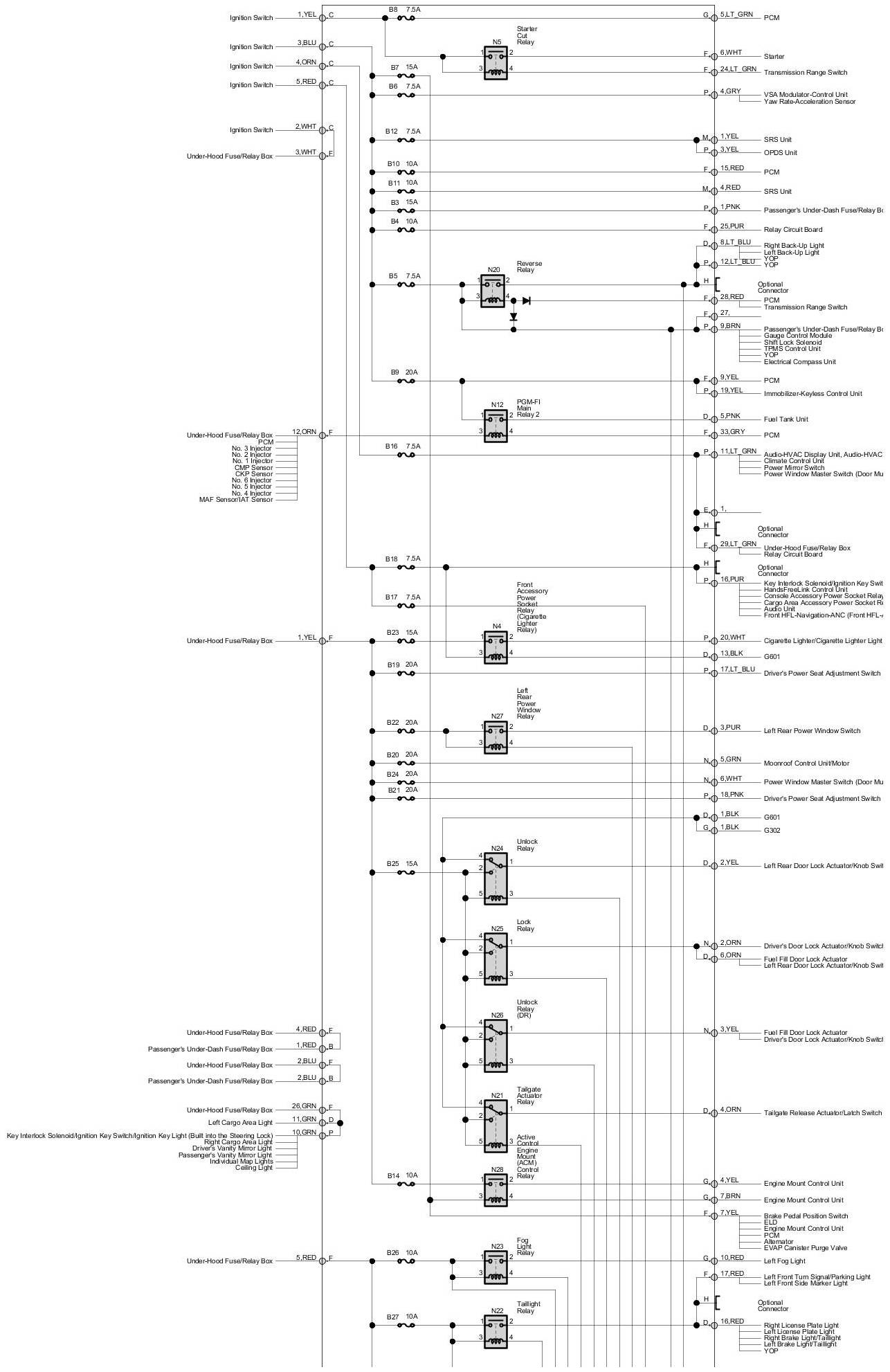 Fuse/Relay Box Diagram - Driver's Under-Dash Fuse/Relay Box