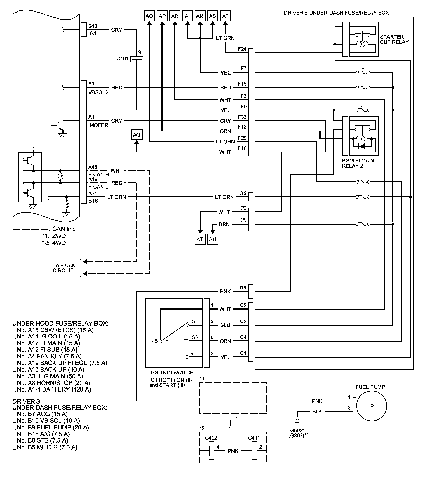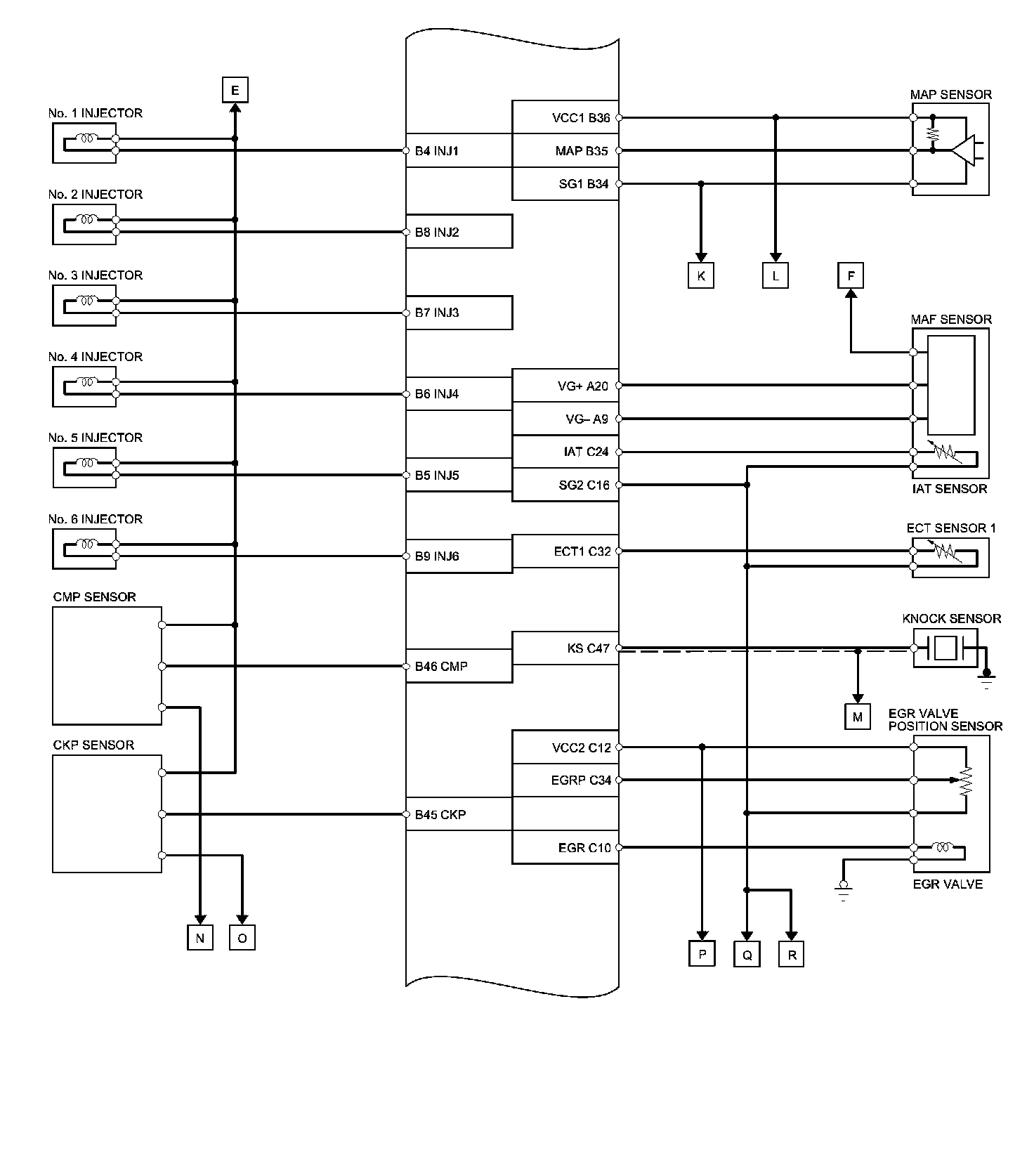 PCM Inputs and Outputs at PCM Connector A (square) (49P)