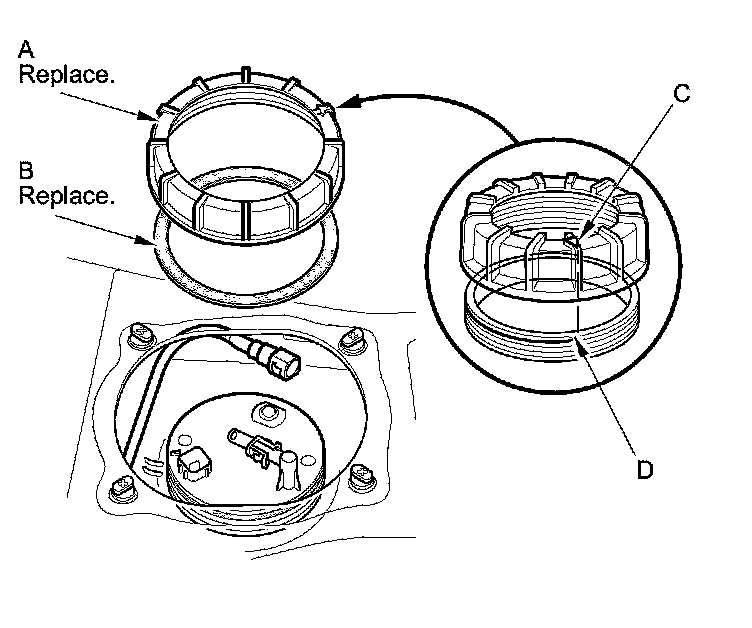 NOTE: Before tightening, align the mark (C) on the locknut with the start of the threads (D).