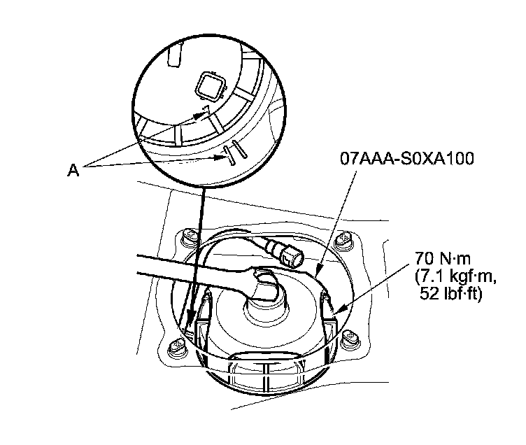 2. Transfer the base gasket (A) from the fuel tank unit to the fuel tank.